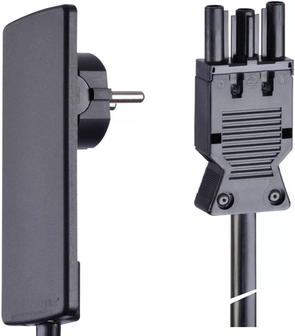 A szükséges dugaszoló aljzatot bútorok takarják el, amelyeket nem lehet egészen a falnak nekitolni? A lapos, csak 5 mm magasságú könyökös dugó megoldja ezt a problémát. A kívánt fogyasztót csatlakoztassuk a csatlakozókábelhez és dugjuk be. Ha a fogyasztót mozgathatóan használjuk, a könyökös dugó még egy további problémát is megold. Az oldalkivezetésű dugók szilárdan helyezkednek el a dugaszoló aljzatban és csak nagy erőkifejtéssel húzhatók ki onnan. Az Evoline® Plug kialakításánál fogva csekély erőkifejtéssel emelőként kiemeli magát a dugaszoló aljzatból.