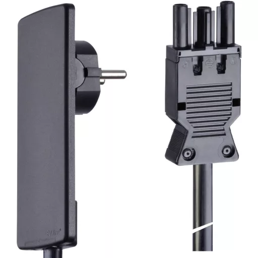 Műszaki adatok: Csatlakozó típus A (illetve bemenetek): Laposérintkezős dugó · Dugó kivitel: egyoldalt hajlított · Kábel típus DIN/VDE szerint: H05VV-F 3G 1,5 mm² · Kábelhossz: 1.50 m · Névleges feszültség: 230 V · Névleges áram: 16 A · Szín: Fekete