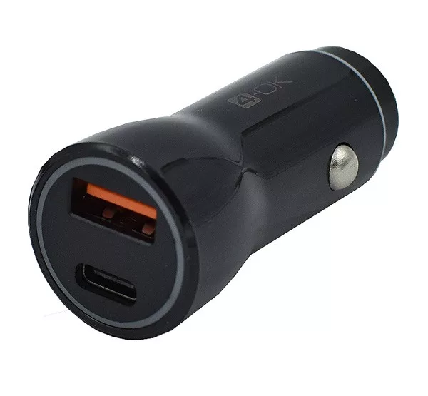 4-OK autós töltő USB+Type-C aljzat 20W, PD gyorstöltő, FEKETE