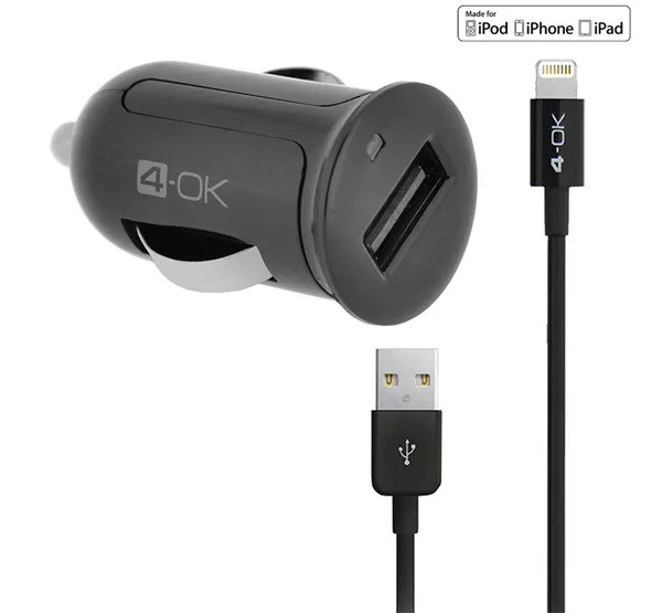 4-OK autós töltő USB aljzat 12W, IPCMB5 utód + lightning kábel, FEKETE