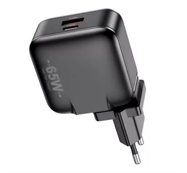 AWEI PD55-EU hálózati töltő USB+Type-C aljzat 65W, PD gyorstöltő, FEKETE