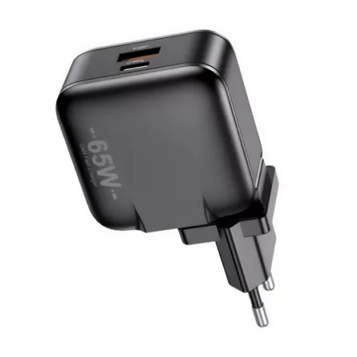 AWEI PD55-EU hálózati töltő USB+Type-C aljzat (65W, GaN, PD gyorstöltő) FEKETE
