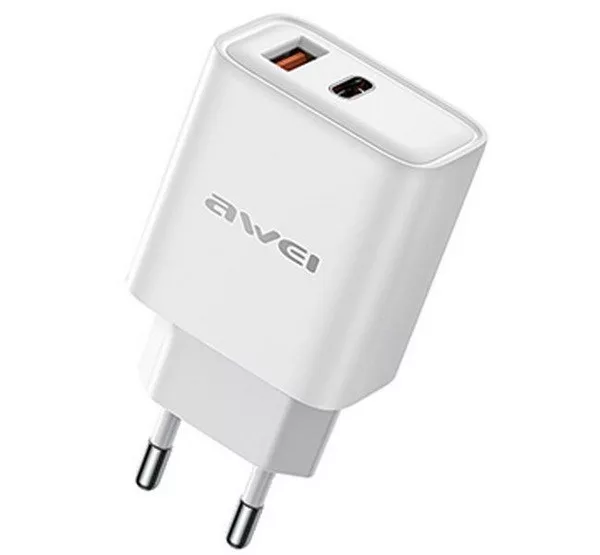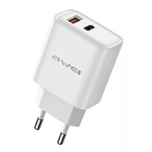 AWEI PD81-EU hálózati töltő USB+Type-C aljzat 22.5W, PD gyorstöltő, FEHÉR