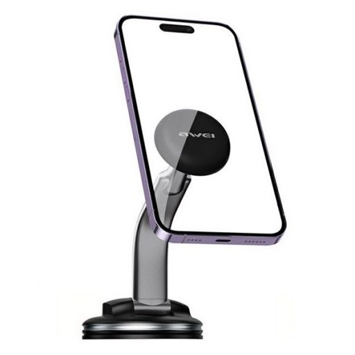 AWEI X45 autós tartó (műszerfalra, öntapadó, mágneses, állítható, alumínium) FEKETE