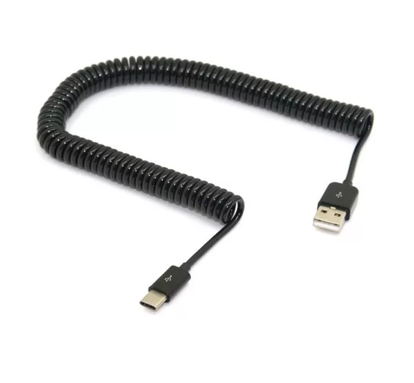Adatkábel (USB 3.1 - Type-C, spirálkábel, 200-300cm) FEKETE