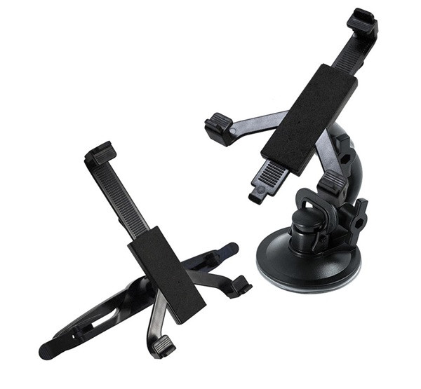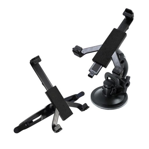 Autós tartó (szélvédőre, fejtámlára, tapadókorongos, gravitációs, 7-10" méretig) FEKETE