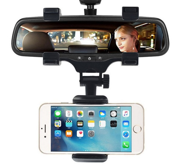 Autós tartó (visszapillantó tükörre, 360°, 50-90mm széles) FEKETE
