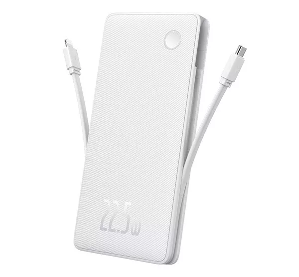 BASEUS AIRPOW LITE vésztöltő USB+Type-C aljzat (10000mAh, 22.5W, PD gyorstöltő, LED jelzés + fix Type-C kábel) FEHÉR