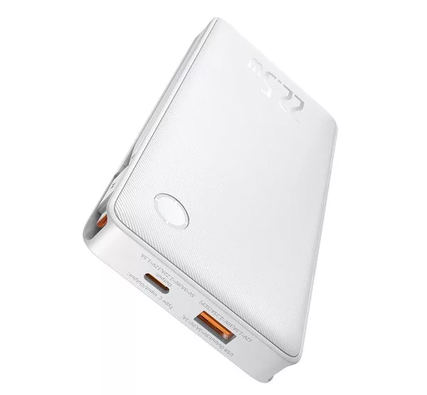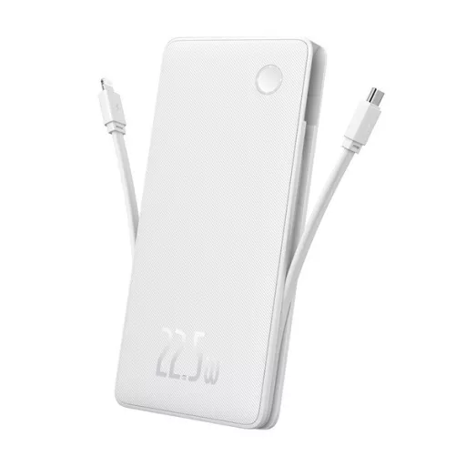 BASEUS AIRPOW LITE vésztöltő USB+Type-C aljzat 10000mAh, LED jelzés + fix Type-C kábel, FEHÉR