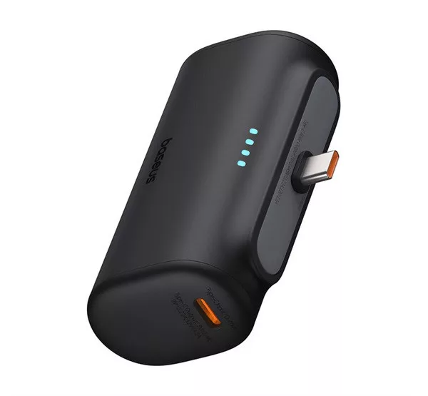 BASEUS COMPACT vésztöltő Type-C aljzat 5000mAh, Type-C csatlakozó + Type-C kábel, FEKETE