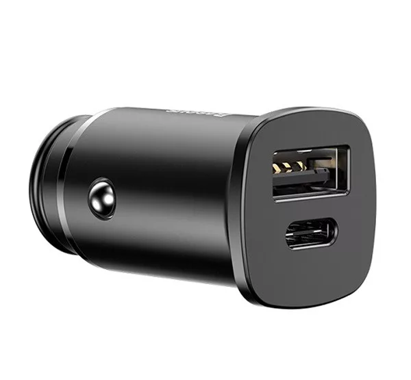 BASEUS SQUARE autós töltő USB+Type-C aljzat (30W, PD gyorstöltő 4.0) FEKETE