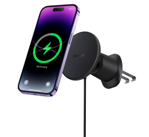BASEUS autós tartó (szellőzőre, 15W, wireless, mágneses, PD gyorstöltő) FEKETE