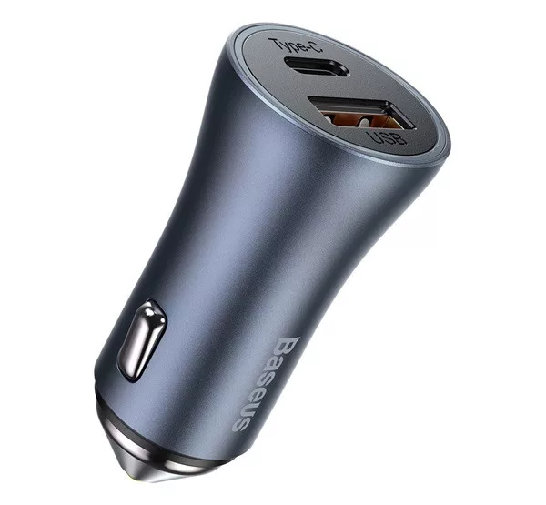 BASEUS autós töltő USB+Type-C aljzat (40W, PD gyorstöltő 3.0, LED jelzés) SZÜRKE