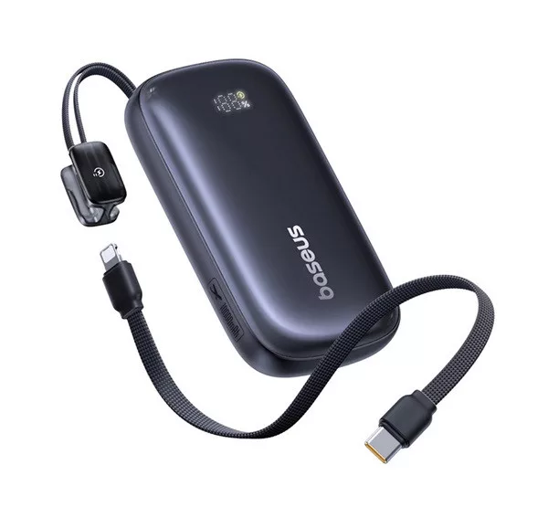 BASEUS vésztöltő Type-C+lightning+USB aljzat (10000mAh, 22.5W, PD gyorstöltő, LED kijelző + Type-C kábel) FEKETE