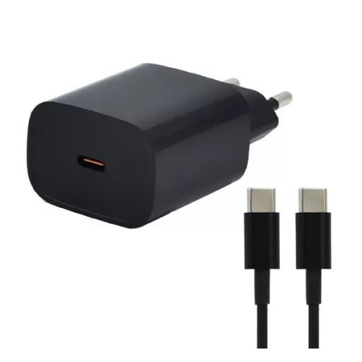 BLACKBIRD BH1497 hálózati töltő USB+Type-C aljzat 25W, PD gyorstöltő + Type-C kábel, FEKETE
