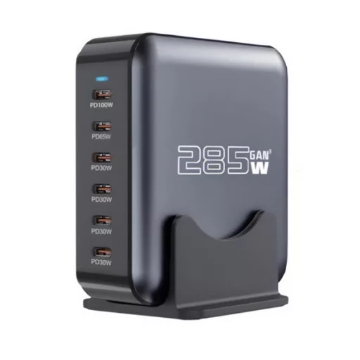 BLACKBIRD BH1668 hálózati töltő 6 Type-C aljzat 285W, PD gyorstöltő, FEKETE