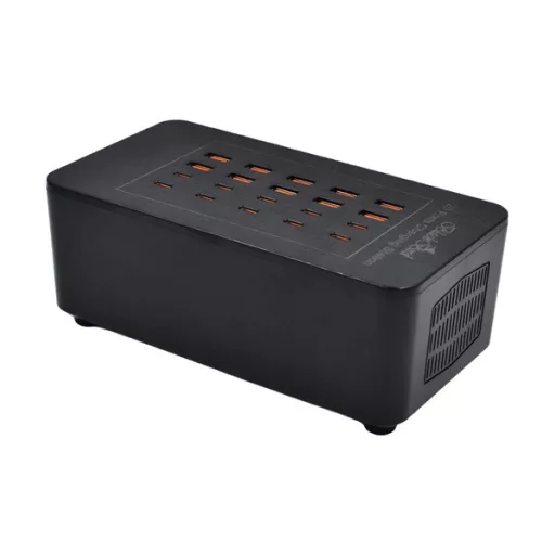 BLACKBIRD BH1676 hálózati töltő 10 USB+10 Type-C aljzat 100W, PD gyorstöltő, FEKETE