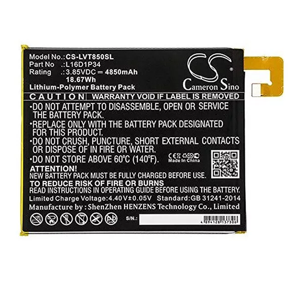 CAMERON SINO Li-Polymer akku (3.85V/4850mAh, Lenovo L16D1P34 kompatibilis) FEKETE