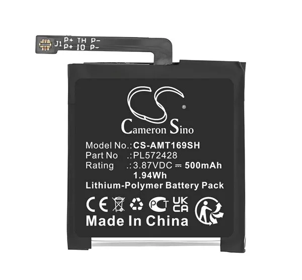 Amazfit T-Rex 2 CAMERON SINO Li-Polymer akku 3.87V / 500mAh, Amazfit PL572428 kompatibilis, FEKETE
