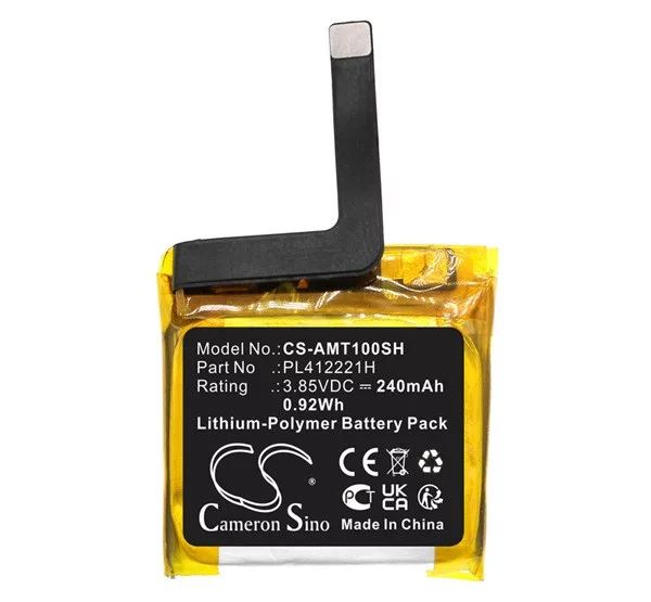 CAMERON SINO Li-Polymer akku (3,85V/240mAh, Amazfit PL412221H kompatibilis) FEKETE