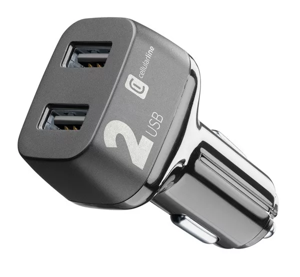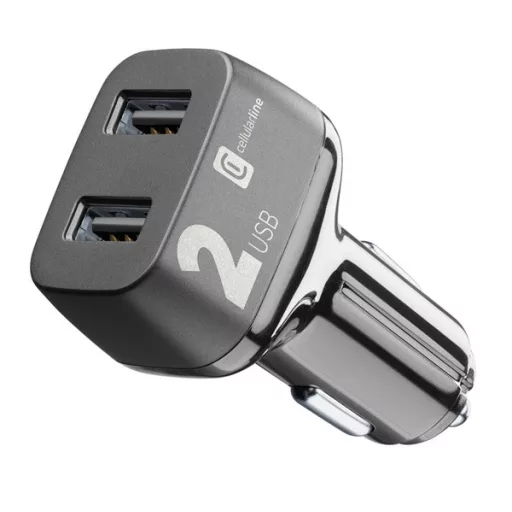 CELLULARLINE autós töltő 2 USB aljzat 2x12W, gyorstöltő, FEKETE