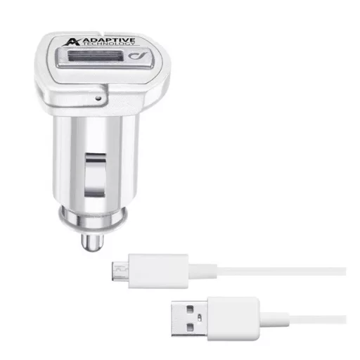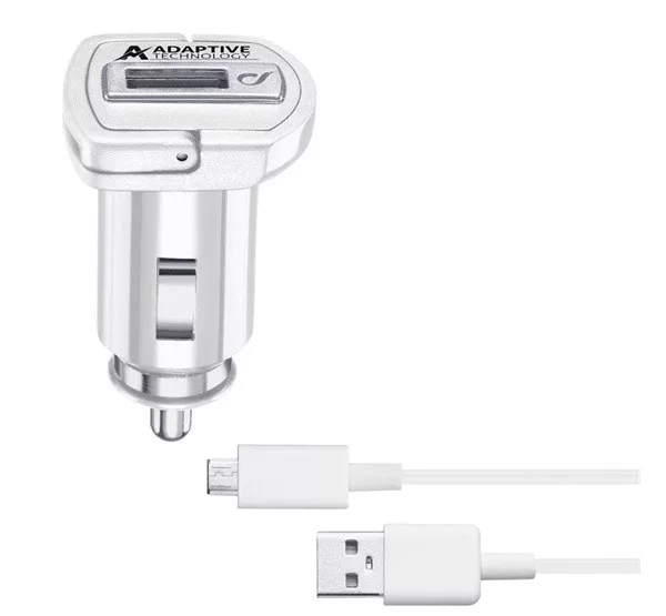 CELLULARLINE autós töltő USB aljzat 15W, gyorstöltő + microUSB kábel, FEHÉR