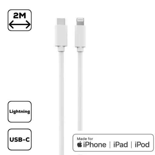 Cellect iPhone USB C - lightning adat 2m, töltőkábel A kábel alkalmas minden lighting kimenettel rendelkező Apple telefon, tablet és egyéb eszköz töltésére és szinkronizálására.Az USB-C hálózati adapterhez csatlakoztatva pedig hálózati aljzatról töltheted fel vele a készülékeidet.Kiemelt jellemzők: Megfordítható kialakításCsomag tartalma: adat és töltőkábel egyben Specifikációk:- Hivatalos MFI engedéllyel rendelkező tartozékunk- Szín: Fehér- Hossz: 2 m- USB-C - Lightning