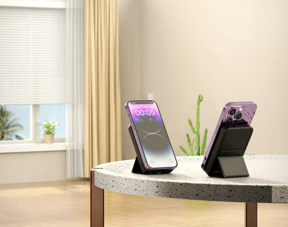 Kompakt Powerbank 10000mAh kapacitással wireless funkcióval és kitámasztóval