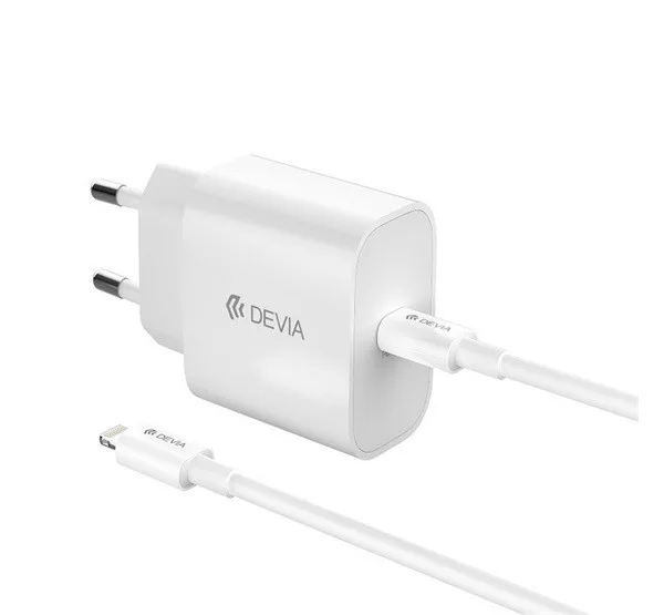 DEVIA SMART hálózati töltő Type-C aljzat 30W, PD gyorstöltő + lightning kábel, FEHÉR