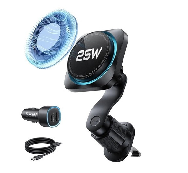 ESR OMNILOCK CRY0BOOST autós tartó (szellőzőre, mágneses, LED, 25W, wireless, gyorstöltő, Qi2 + autós töltő) FEKETE