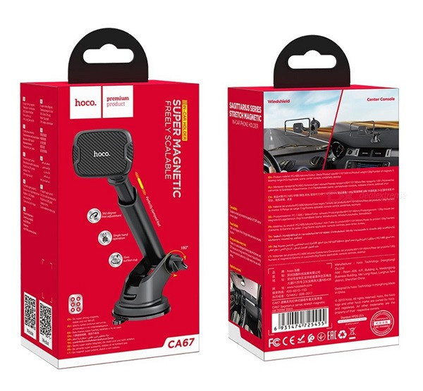 HOCO CA67 autós tartó (műszerfalra, szélvédőre, tapadókorongos, mágneses, 360°) FEKETE