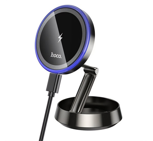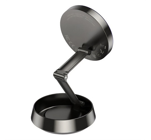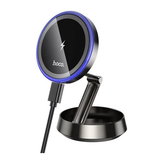 HOCO HW33 autós tartó (műszerfalra, mágneses, 360°, wireless, gyorstöltő, 15W, összehajtható) FEKETE