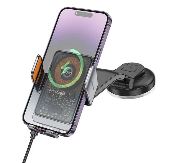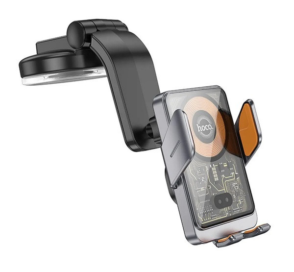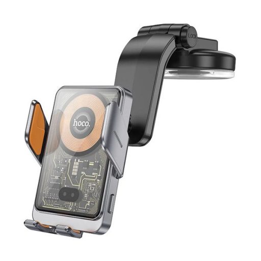 HOCO HW8 autós tartó (műszerfalra, szélvédőre, tapadókorongos, automata, 15W, wireless, gyorstöltő, 4.5-7" méret) FEKETE