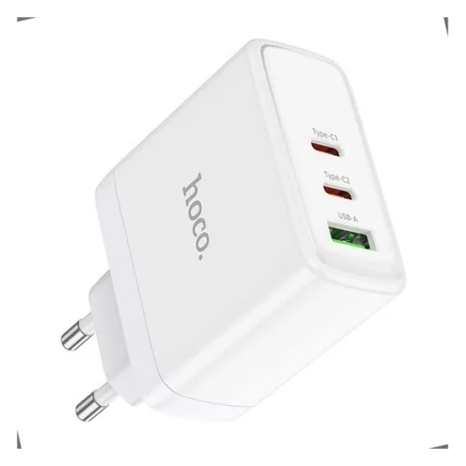 HOCO N30 hálózati töltő USB+2 Type-C aljzat (65W, GaN, PD gyorstöltő 3.0) FEHÉR