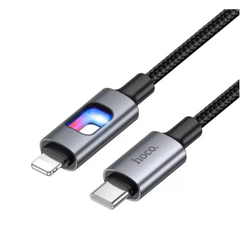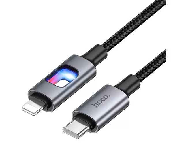 HOCO U144 adatkábel (Type-C - lightning, 27W, cipőfűző, LED jelzés, 120cm) FEKETE