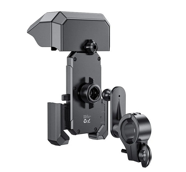 HOCO WILD WOLF kerékpáros és motoros telefontartó (kormányra rögzíthető, 360°, napellenző, 4.7-7" méret) FEKETE