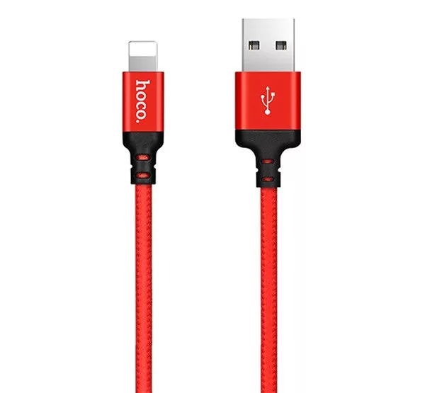 HOCO X14 adatkábel (USB - lightning, gyorstöltő, cipőfűző, 100cm) PIROS