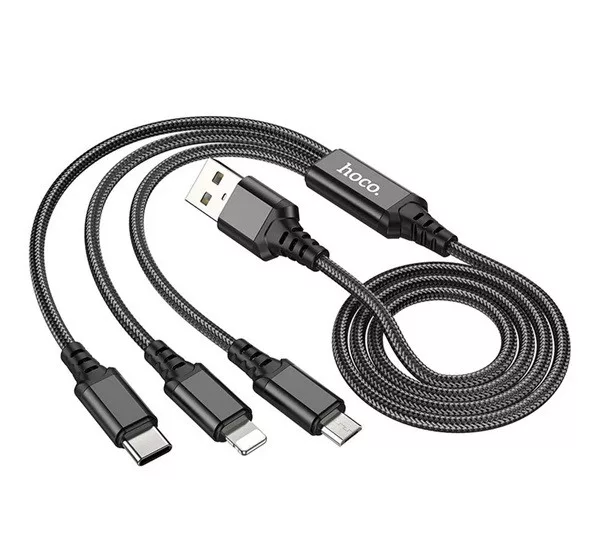 HOCO X76 töltőkábel 3in1 USB - Type-C/lightning/microUSB, 100cm, FEKETE