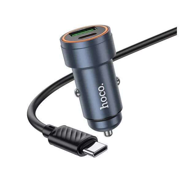 HOCO Z57A autós töltő Type-C+USB aljzat 30W, PD gyorstöltő 3.0 + Type-C kábel, FEKETE