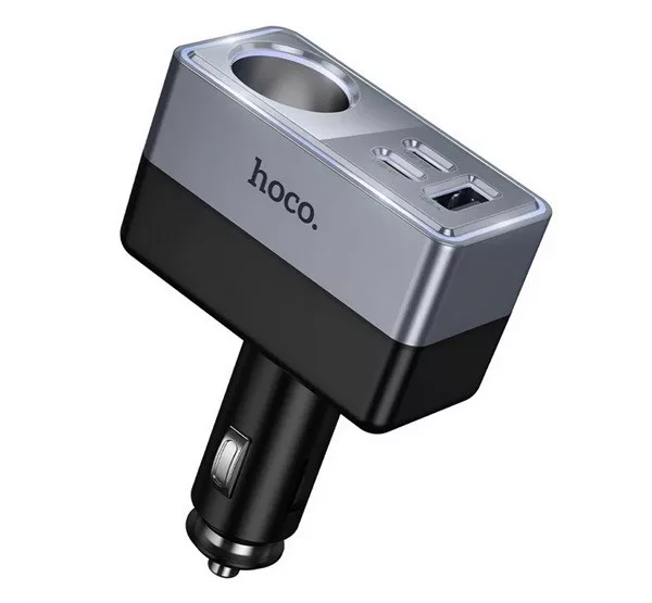 HOCO Z65A szivargyújtó adapter (elosztó, szivargyújtó+USB+2 Type-C aljzat, 165W, PD gyorstöltés 3.0) FEKETE