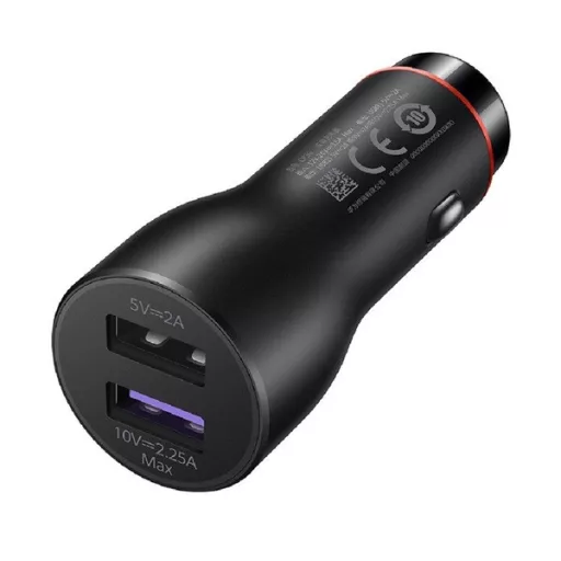 HUAWEI autós töltő 2 USB aljzat 22.5W, gyorstöltő, FEKETE