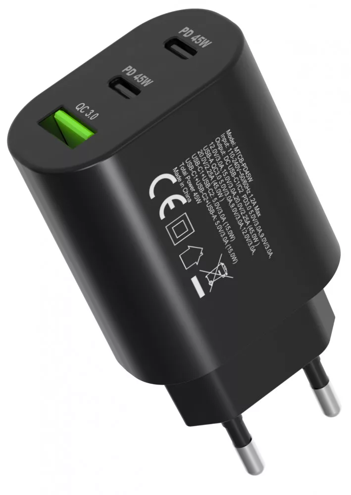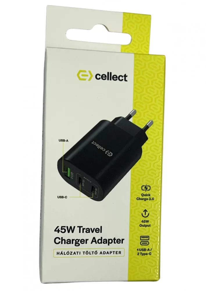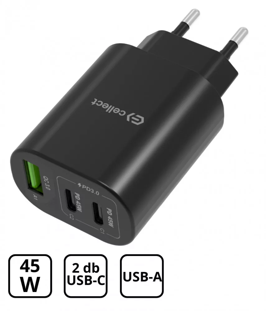 Hálózati gyorstöltő adapter 45W, Fekete