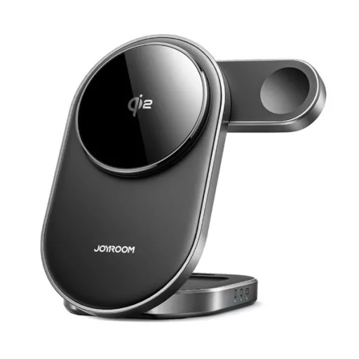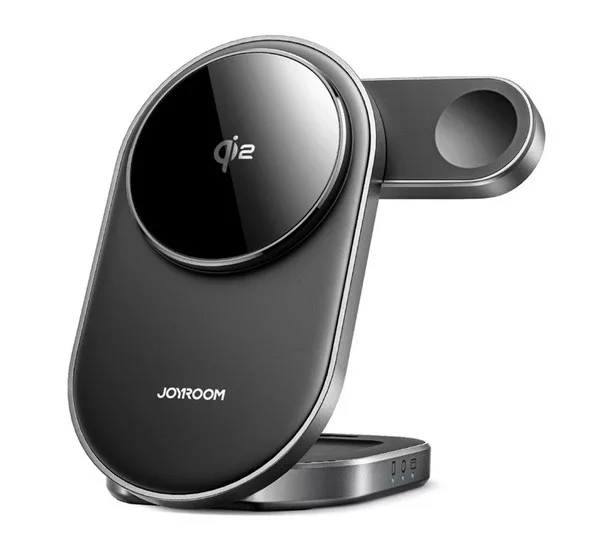 JOYROOM JR-W17 asztali töltőállvány 3in1 (15W, gyorstöltő, wireless, MagSafe, Airpods, Apple Watch töltő) FEKETE