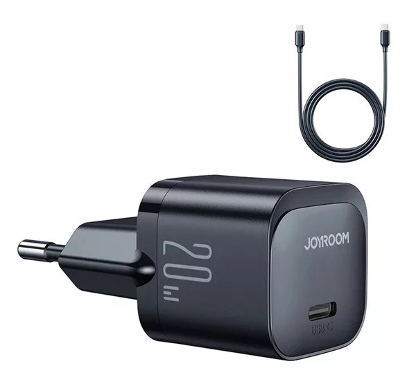 JOYROOM MINI hálózati töltő Type-C aljzat 20W, PD gyorstöltő + Type-C kábel, FEKETE