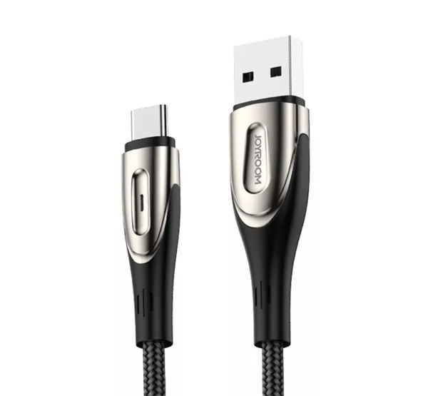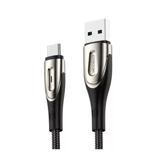 JOYROOM SHARP adatkábel USB - Type-C, LED jelzés, FEKETE