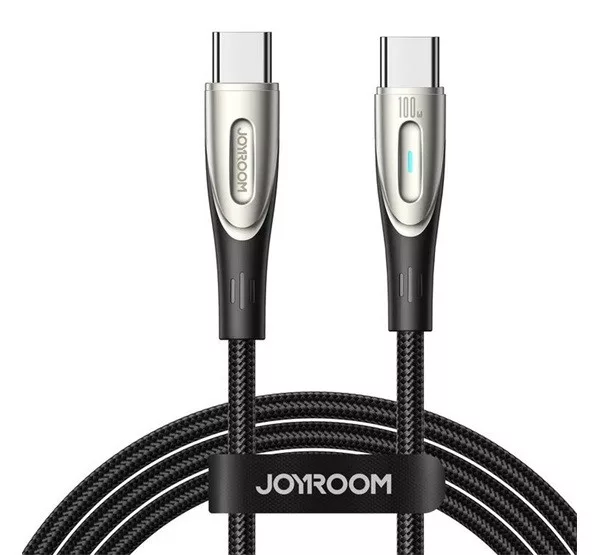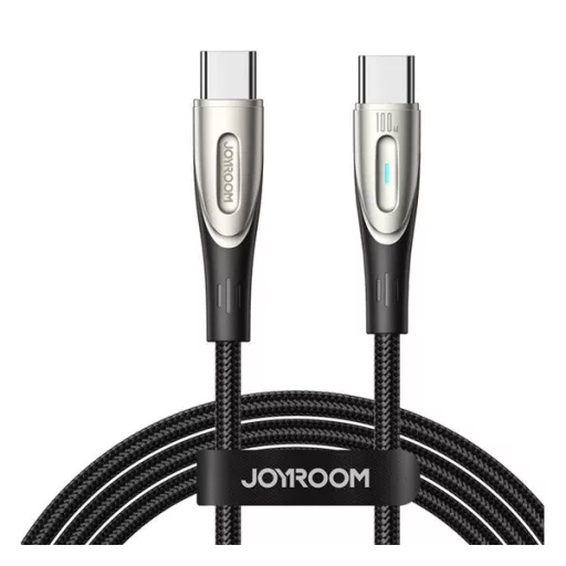 JOYROOM STAR-LIGHT adatkábel (Type-C - Type-C, 100W, gyorstöltő, LED jelzés, 120cm) FEKETE