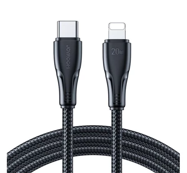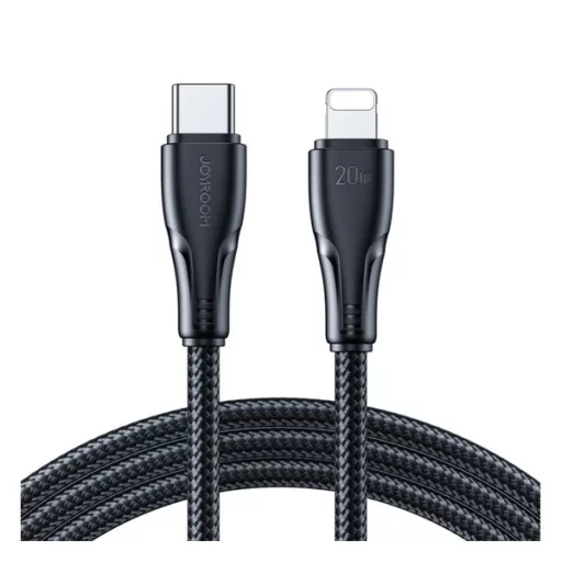 JOYROOM SURPASS adatkábel (Type-C - lightning, 20W, gyorstöltő, törésgátló, 120cm) FEKETE