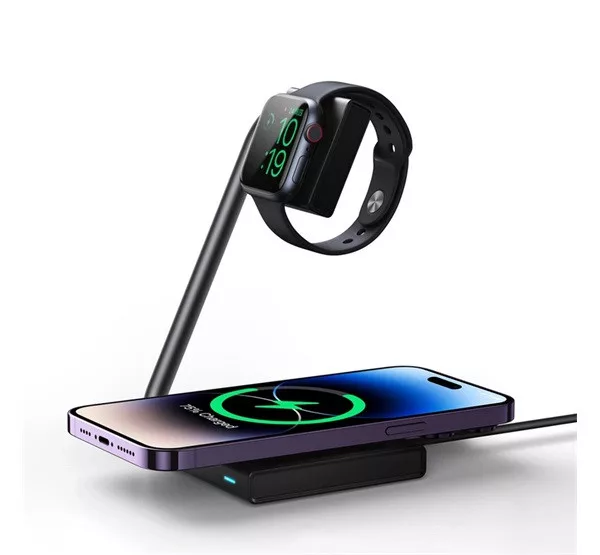 JOYROOM asztali töltőállvány 2in1 (15W, wireless, MagSafe, Apple Watch töltő, kábelt nem tartalmaz) FEKETE