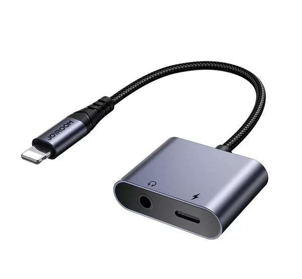 JOYROOM audió adapter és töltőkábel (elosztó, lightning+3.5mm jack aljzat - lightning, cipőfűző) FEKETE