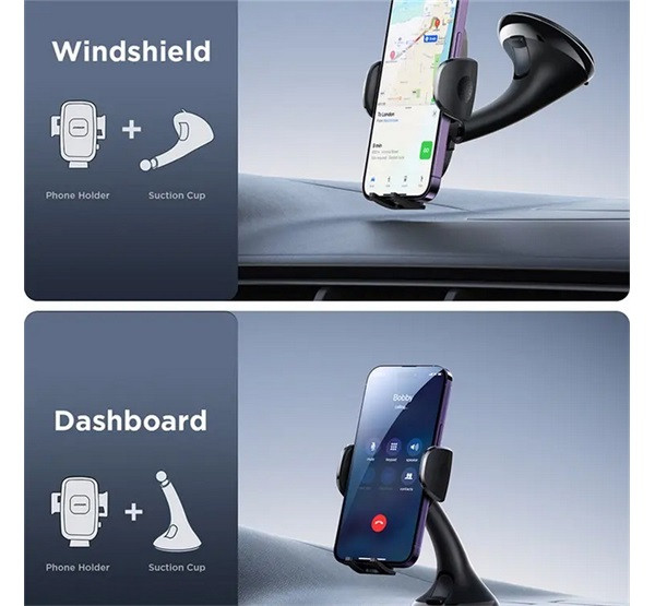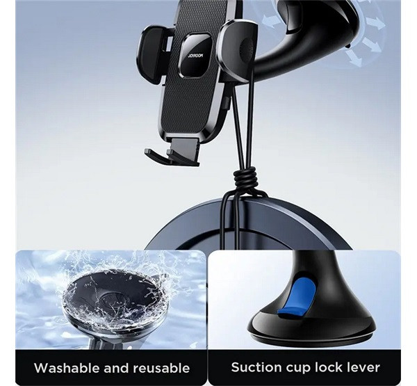 JOYROOM autós tartó (műszerfalra, szélvédőre, tapadókorongos, automata, 360°, 4.7-6.7" méret) FEKETE